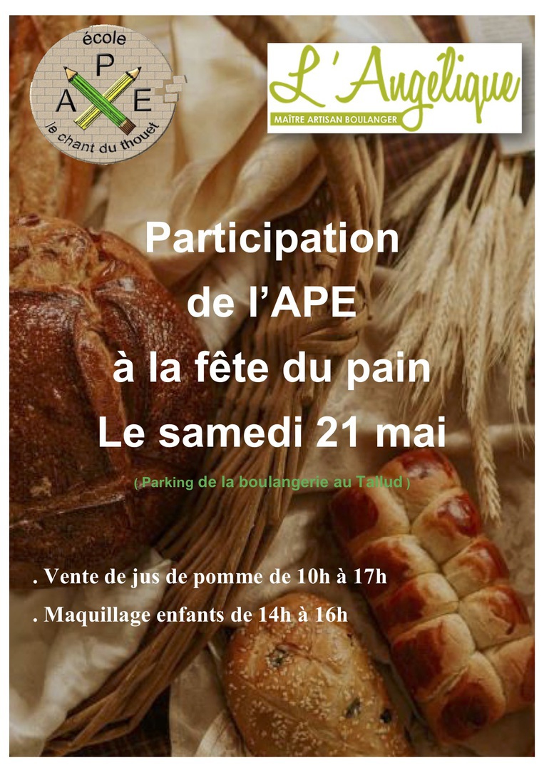 L'APE sera présente le 21 main devant la boulangerie duTALLUD